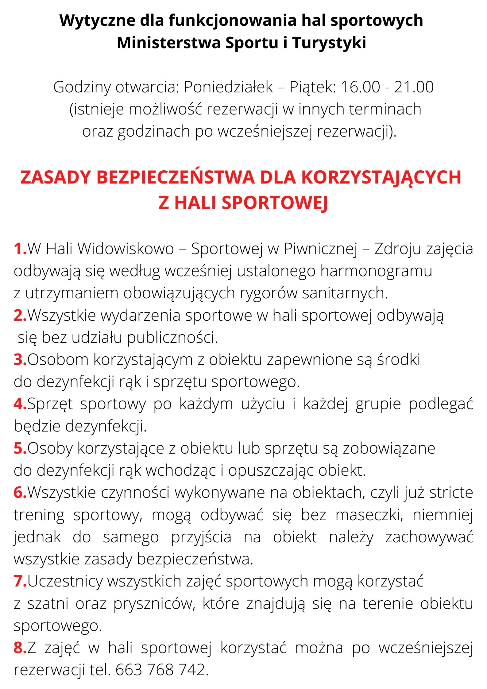 Drukuj Powrót do poprzedniej strony Nowe wytyczne dla funkcjonowania hali sportowej 23.10.2020 16:17 Treść
